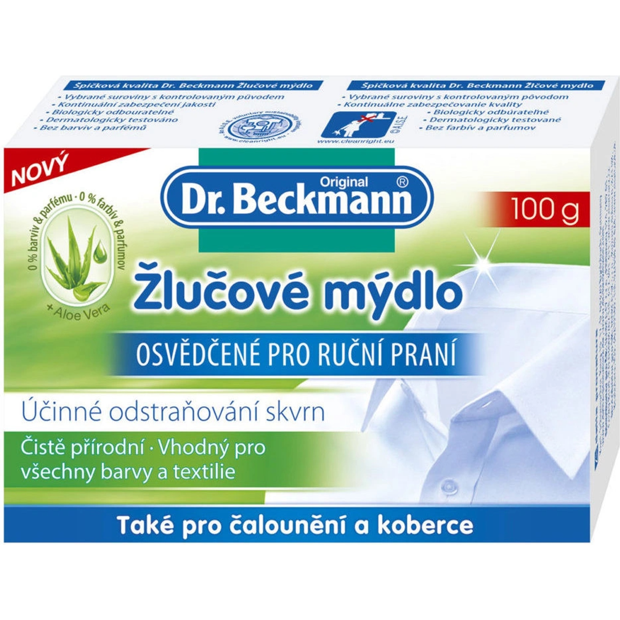 | #7 | Dr. Beckmann žlučové mýdlo na skvrny ![]() | Na textilie, čalounění a koberce + bez problému si poradí i s velmi odolnými skvrnami + díky obsahu aloe vera je šetrné ke tkaninám + neobsahuje barviva, parfém ani konzervační látky do 70 Kč | ⭐ 94 % | Číst recenze |