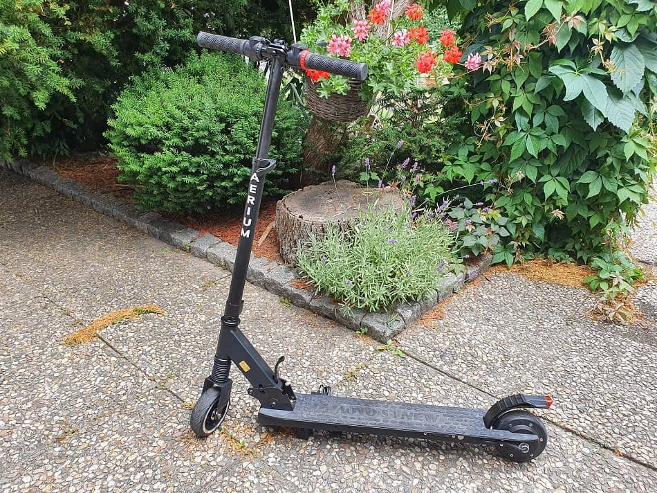 Značka Aerium se v tomto případě vydala trochu jinou cestou, nesnažila se za malý peníz nabídnout co nejnadupanější model. Naopak vytvořila velmi lehký a úsporný model, který se perfektně hodí pro méně náročné popojíždění po městě, stezkách apod. Právě váha a skladnost jsou největší předností tohoto modelu.